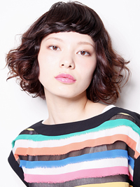 cutはグラデーションボブをベースに前髪を短く流れるようにアシンメトリーに切りました。ワンカールでパーマを施してドライヤーで乾かすだけではねて、ソフトワックスで仕上げれる簡単styleです。カラーはバイオレットアッシュの6レベルstyleに締まりがでるようにしました。