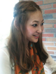 バングをかなり重めに作ることによってコケティッシュさと、秋らしい重みのある質感の中に毛先に動きをだしました。ナチュラルなグラデーションカラーと、その中でも毛先にランダムに根元と同じレベルのローライトを入れ、立体感を演出しています。