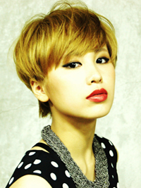 可愛くなりがちなベーシックなマッシュベースのショートスタイルをハイトーンのマットゴールドでCOOLに仕上げてみました。