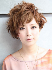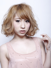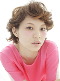 ベースは重めに残し、毛先に動きが出るようにパーマをプラス。カラーはゴールドベージュで。トリートメントをつけてから根元に風を当て、毛先をくるくる巻いて、ワックスで軽くほぐして完成