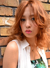 前髪は長めに残し、大人っぽさをプラス。夏に向けて明るめカラーで力強く。コテはMIXであまり強く巻きすぎないのがポイント。