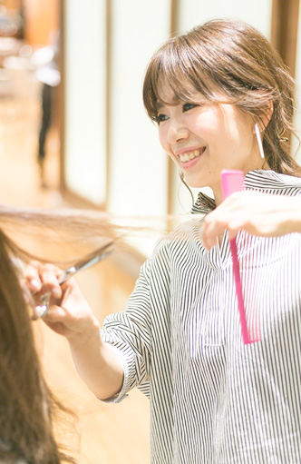 | サロンワークの中でも特にこだわっているのが前髪です。前髪ひとつで色々な雰囲気に変わるので数ミリ単位で気をつけていつもカットしています。そしてもうひとつ気をつけているのが、お客様の発する言葉を聞き逃さずに拾うことです。直接は希望を伝えられなくても、悩みやコンプレックスは何気なく話す言葉の中にたくさん隠れています。そんなひとつひとつを汲み取って形に出来た時、本当に似合うスタイルでお客様が喜んでくださり、来て良かった!と言って頂ける瞬間が一番嬉しいです。